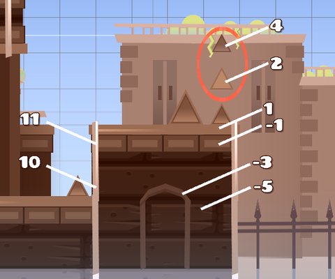 - Complex deco will use more Z layers for everything; for example, a background may be from B5-B3, blocks from B2-T1, and so on.