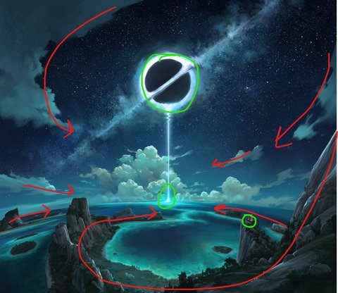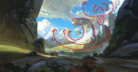 While this is incredibly useful for shape design and composition, as you’ll see in later guides, it’s also important to have some “rest areas” where your eyes aren’t constantly being moved around. This way, you aren’t constantly overwhelming viewers.