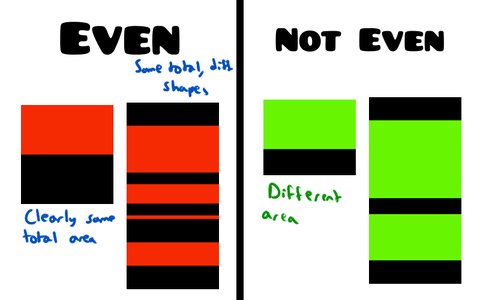 Size: Shapes with the same size are even. The example above shows this pretty clearly. However, this can also apply to shapes that look completely different but take up the same area.