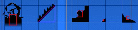 - Slopes are similar to blocks, but they have an slanted side on the top and an angular hitbox.