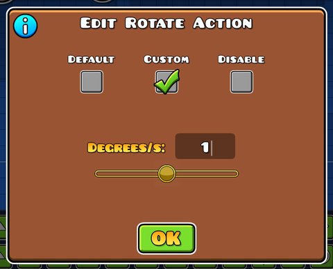 Edit Special to give them a custom rotation. There are three options: the default rotation, which randomly fluctuates between a set of rotation speeds; the custom rotation which lets you input a specific rotation speed measured in degrees per second; and the disable rotation, which ceases all rotation on the block.