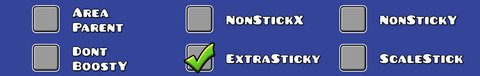 - ExtraSticky keeps the player stuck onto blocks moving downwards at higher speeds. This has a limit, however: moving too fast can still cause the player to stop sticking to the block.