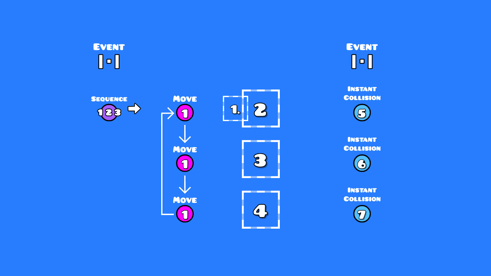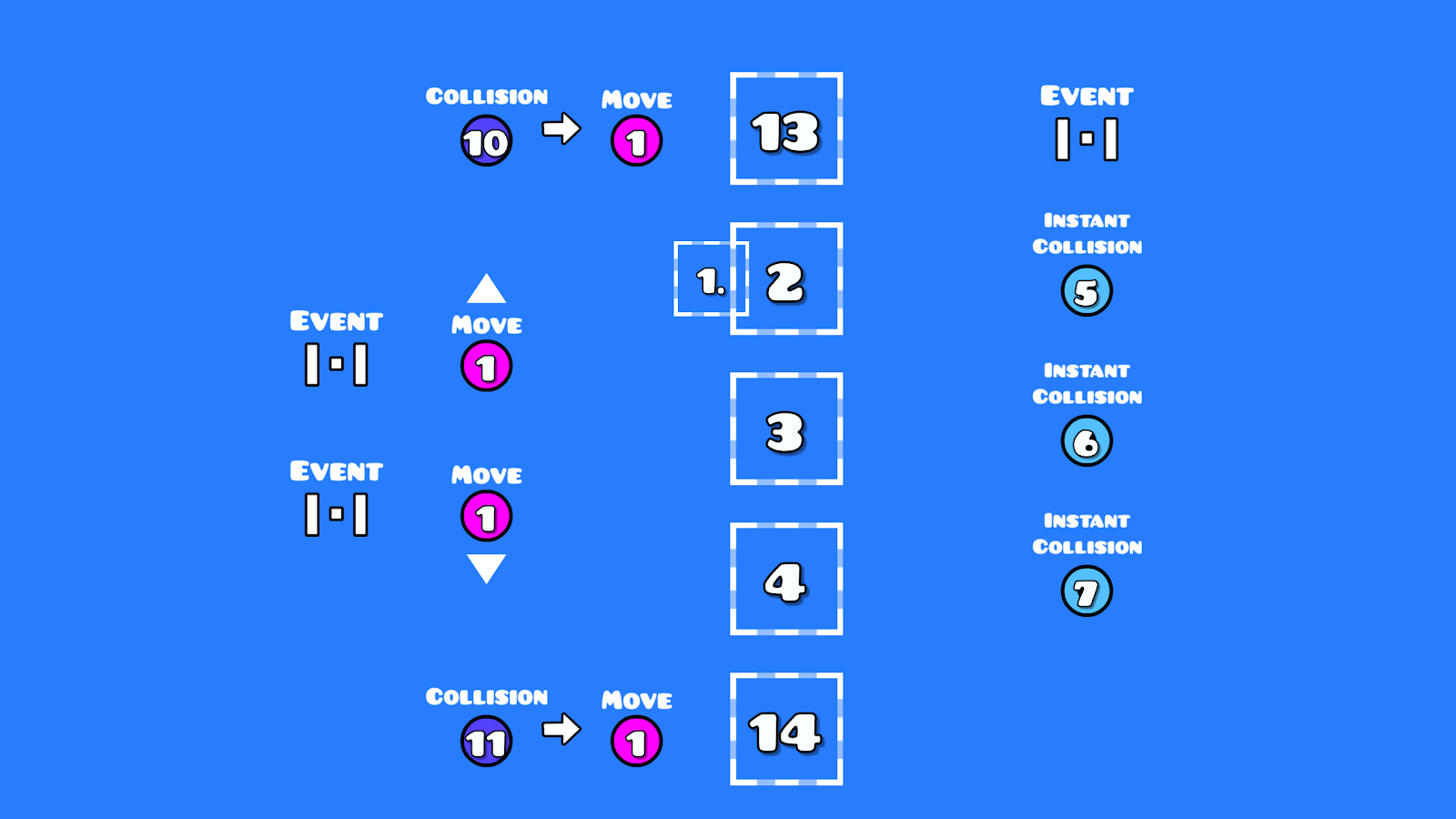Collisions work differently than the other methods, while triggers and toggle blocks exclusively detect a player input, collisions don’t, as they only require the player to be touching them, this makes them the least reliable option of the three, so the player must be boxed to prevent any unexpected movement outside of player inputs.